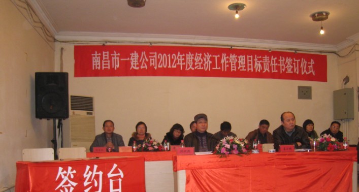 南昌市一建公司2012年度經(jīng)濟(jì)工作管理目標(biāo)責(zé)任書簽訂儀式于2011年12月16日下午2:30分在公司一樓禮堂舉行