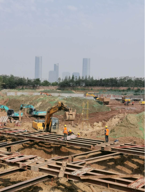自2月28日復(fù)工以來(lái),0728項(xiàng)目部積極組織復(fù)工復(fù)產(chǎn),堅(jiān)持一邊嚴(yán)格疫情防控,一邊積極組織施工生產(chǎn),克服重重困難,科學(xué)管理,采用沖擊錘除障,反循環(huán)樁機(jī)成孔的方法解決了直接影響后期冠梁和擋土墻施工的三經(jīng)路支護(hù)樁除障工作;采取提前重修施工道路和提前完成沖洗設(shè)備的安裝的方法,同步完成原施工道路下40多根未施工的樁和其他樁基工作;采用平行分階段施工,使基坑支護(hù)鋼支撐工程進(jìn)度得到保證;采用挖掘機(jī)作為材料運(yùn)輸機(jī)具,確保了冠梁和擋墻施工材料運(yùn)輸順利進(jìn)行;通過(guò)重新規(guī)劃打樁順序,合理安排,使樁基施工提前完成施工任務(wù)……解決了施工過(guò)程中一系列的重點(diǎn)難點(diǎn)工作,為后期工程的順利進(jìn)行打下了堅(jiān)實(shí)的基礎(chǔ)。