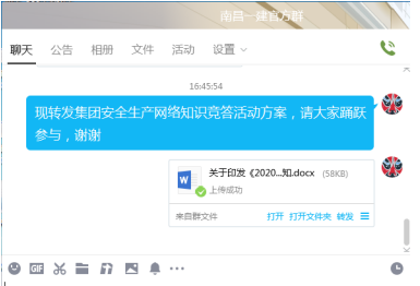 2、公司響應(yīng)集團(tuán)開展安全生產(chǎn)知識(shí)網(wǎng)絡(luò)競(jìng)答活動(dòng),已經(jīng)下發(fā)通知?jiǎng)訂T廣大干部職工參加,質(zhì)量技術(shù)安全部將在活動(dòng)開始時(shí)做到每日監(jiān)督和提醒,確?;顒?dòng)宣傳教育作用得到落實(shí)和鞏固。